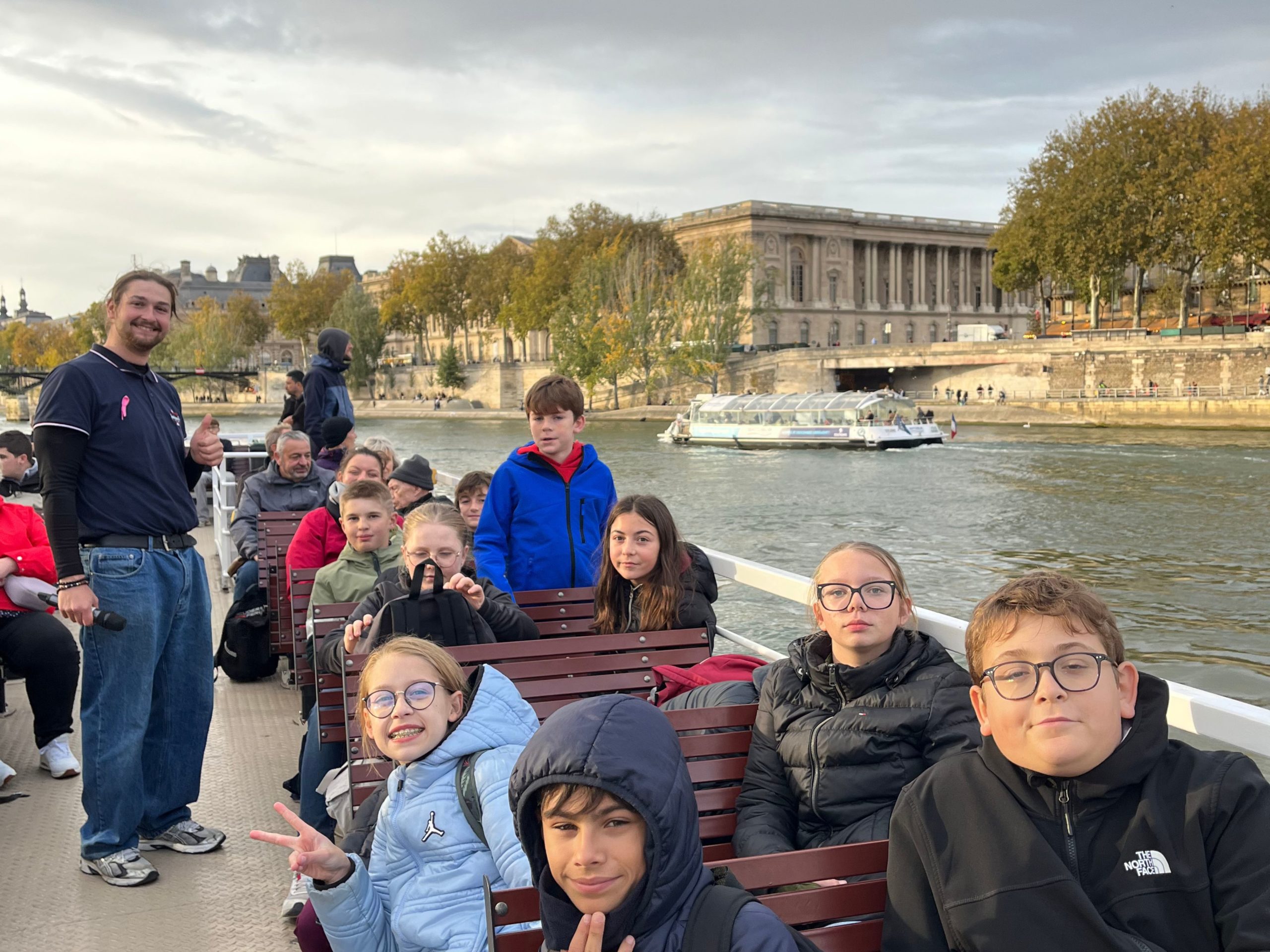Accompagnés du Maire et de membres du Conseil Municipal, ils ont débuté leur journée par la découverte du Musée des Invalides, haut lieu de mémoire nationale, avant de se rendre au Sénat invités par la Sénatrice Elsa SCHALCK, où ils ont pu s’imprégner du fonctionnement des institutions et du rôle des parlementaires. La journée s’est poursuivie par un tour en bateau-mouche sur la Seine, l’occasion d’admirer autrement les grands monuments parisiens.